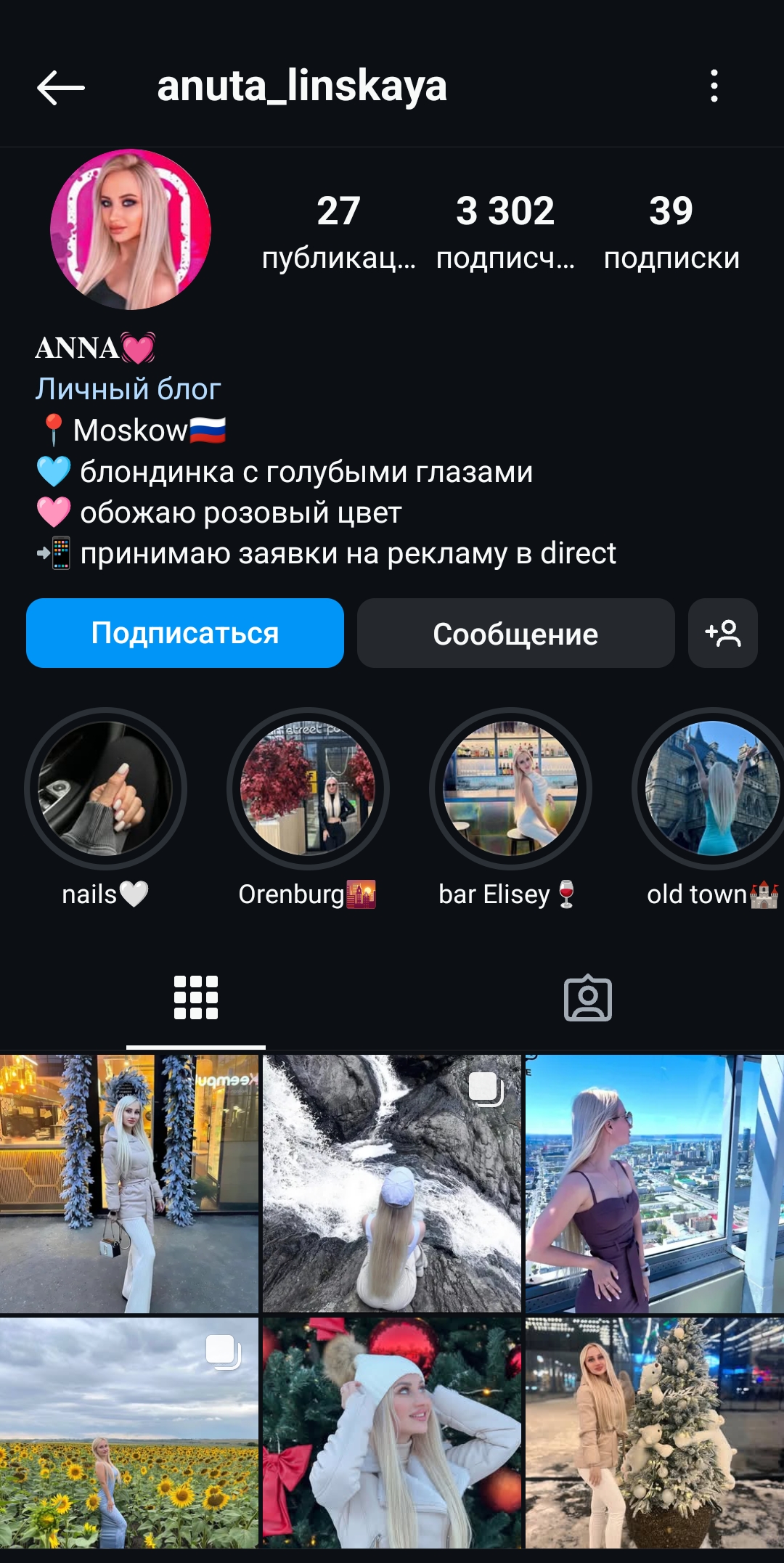 Женский профиль инстаграм